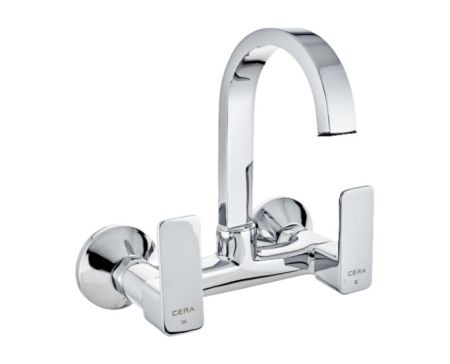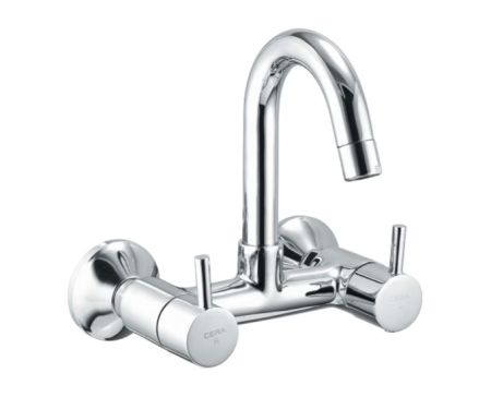 Quarter Turn Wall mounted Sink mixer Hot & Cold with 150 mm (6”) long swivel spout and wall flange | F1005501