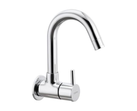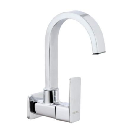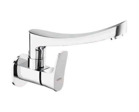 Quarter Turn Wall mounted Sink cock with long swivel spout and wall flange | F1015251
