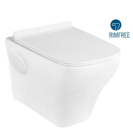 Wall Hung Toilet Seat (set) White | KS128 | Size : 485x362x340 mm, P-Trap : 220 mm | PP Soft Close Seat Cover : KB007E