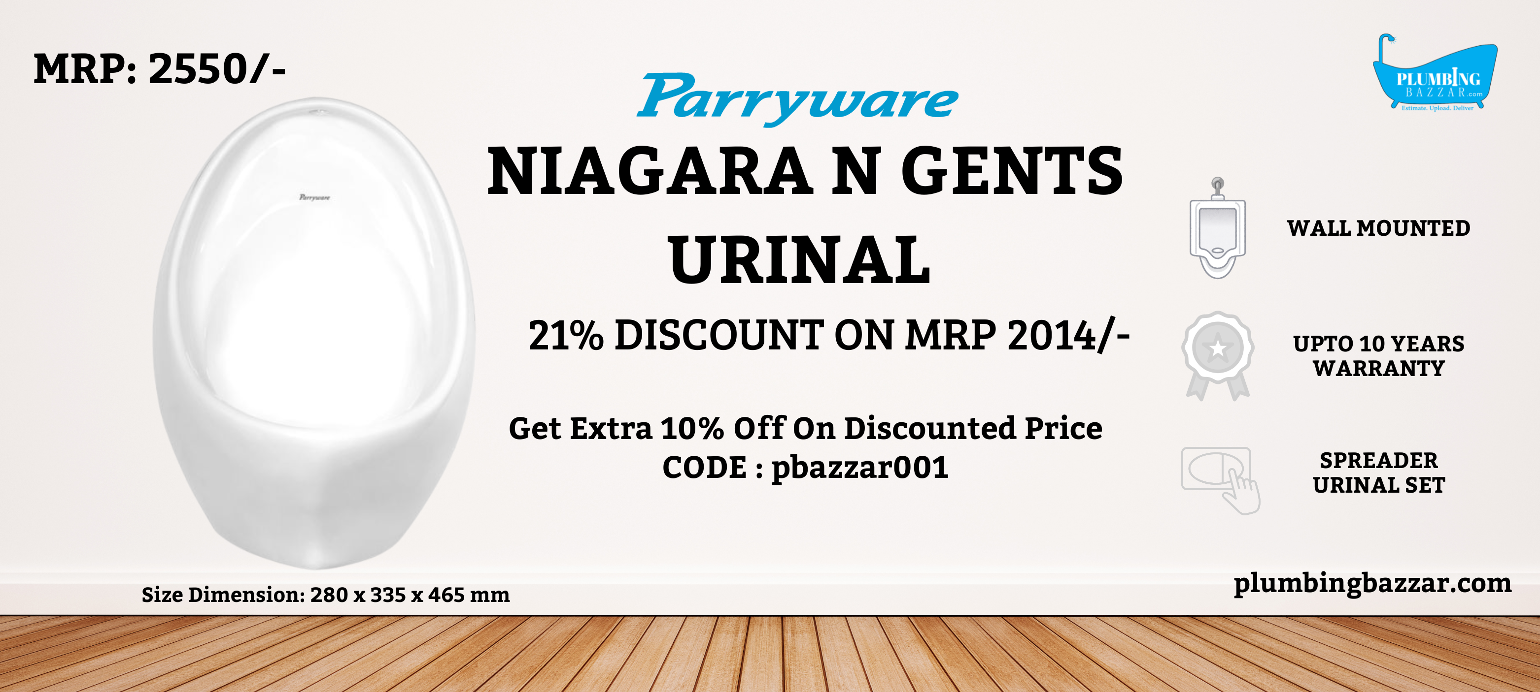 Gents Urinal | P4619PW0704 | Dimensions : 340x320x430mm