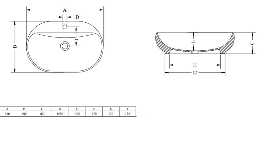 Thin Rim Table Top Wash Basin | S2020103 | Size: 600 x 400 x 160 mm