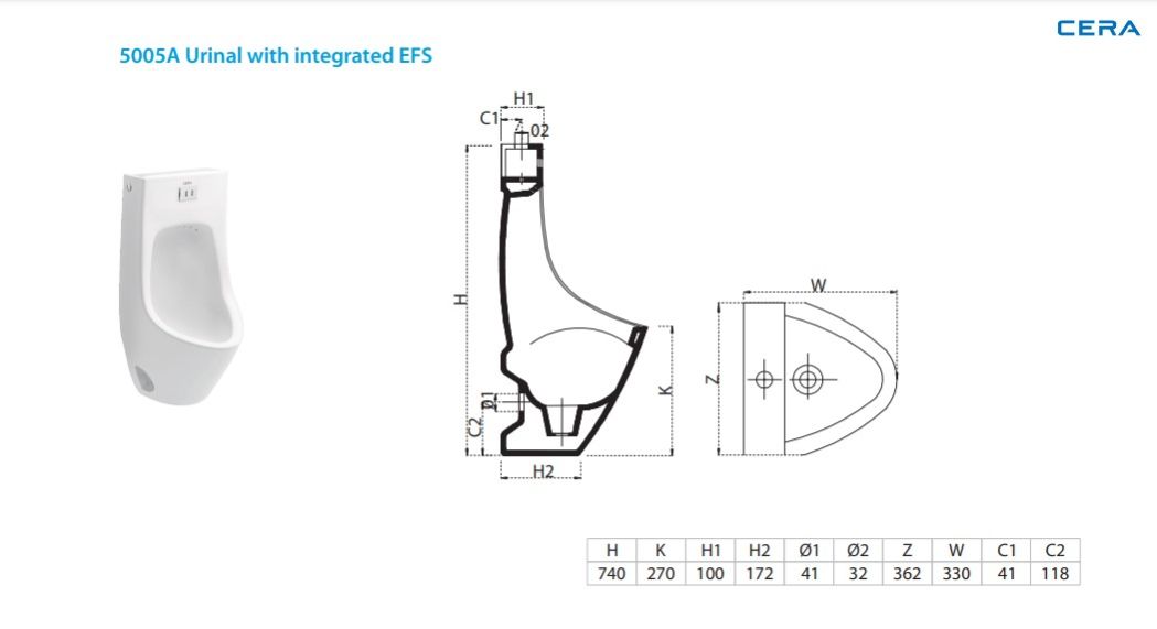 Gents Sensor Urinal | S4010101 | Size: 360 x 330 x 740 mm