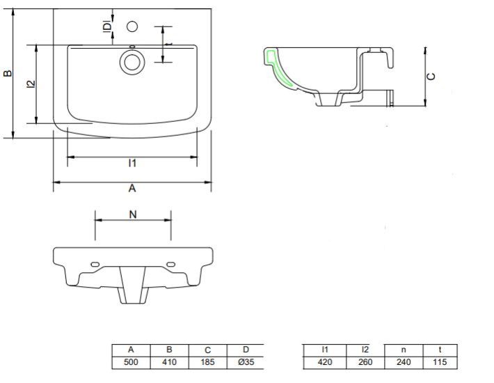 Wall Hung Wash Basin | S2040148 | Size: 500 x 410 x 185 mm