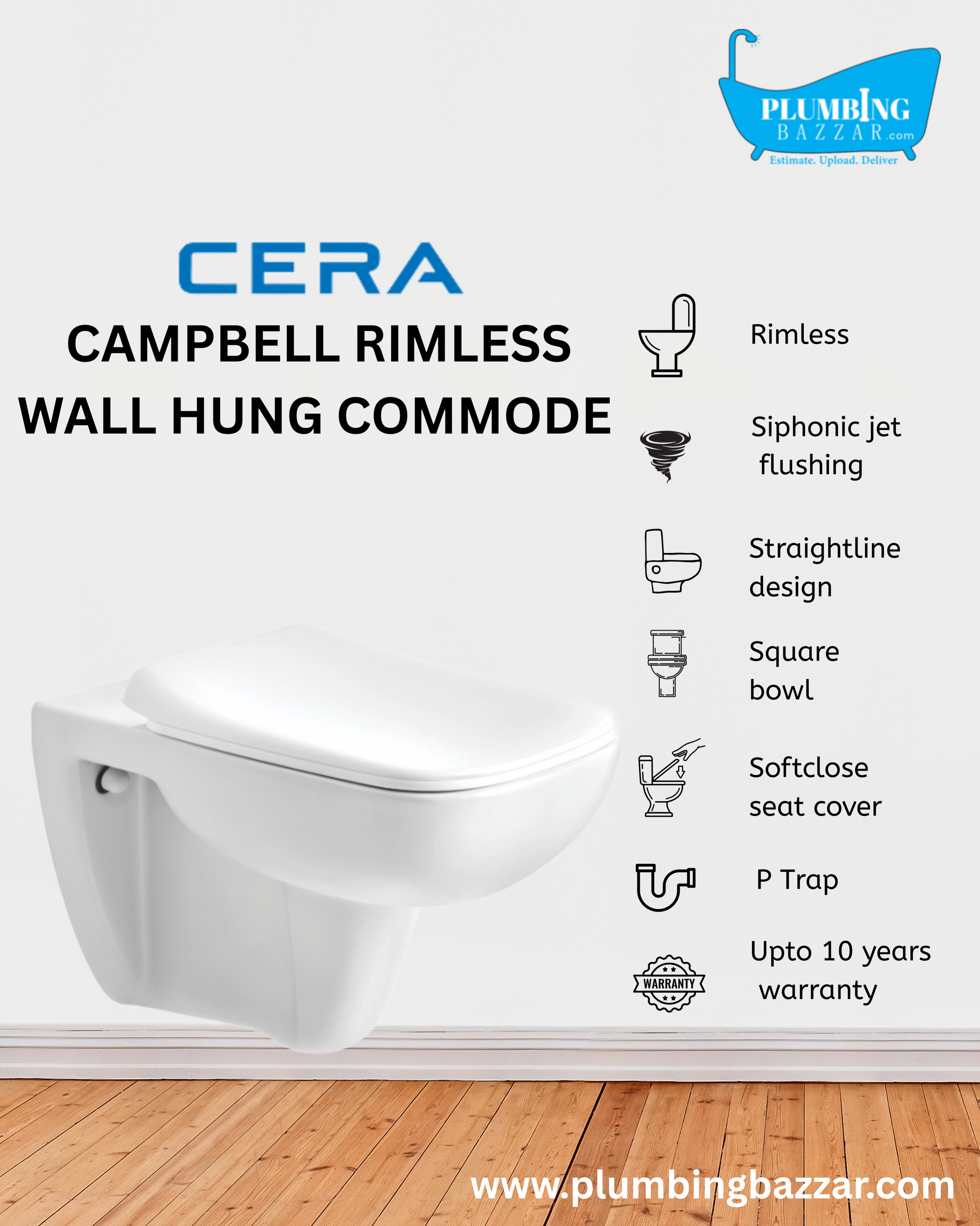 CERA CAMPBELL RIMLESS WALL HUNG COMMODE