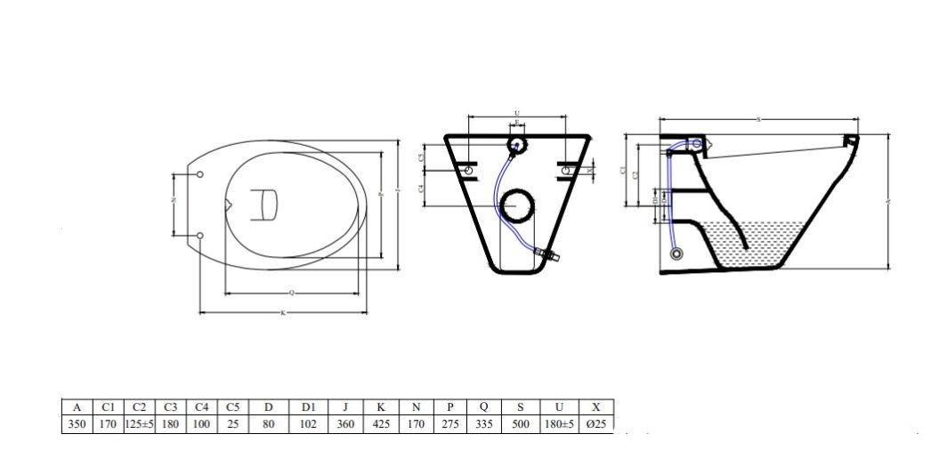Wall Hung WC | S1043101 | Size: 500 x 360 x 350 mm
