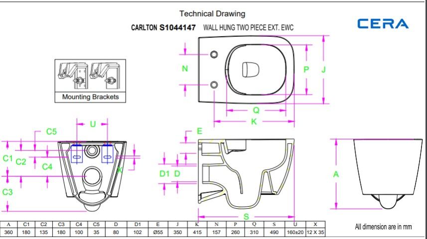 Rimless Wall Hung WC | S1044147 /S1043147 | Size: 490 x 350 x 360 mm