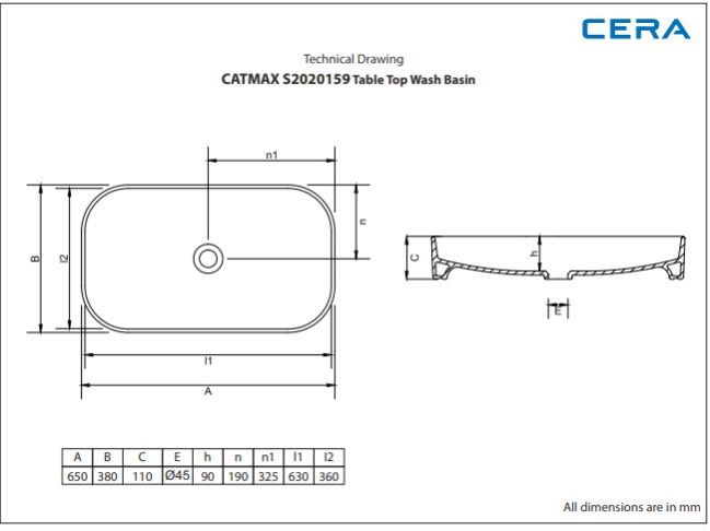 Thin Rim Table Top Wash Basin | S2020159 | Size: 650 x 380 x 110 mm