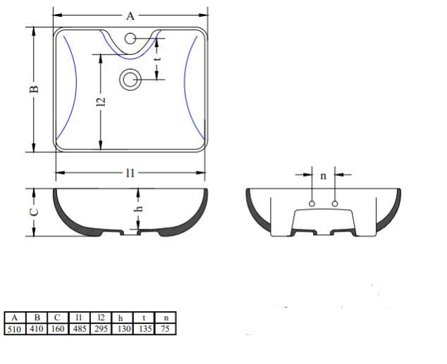 Wall Hung Wash Basin | S2040136 | Size: 510 x 410 x 160 mm