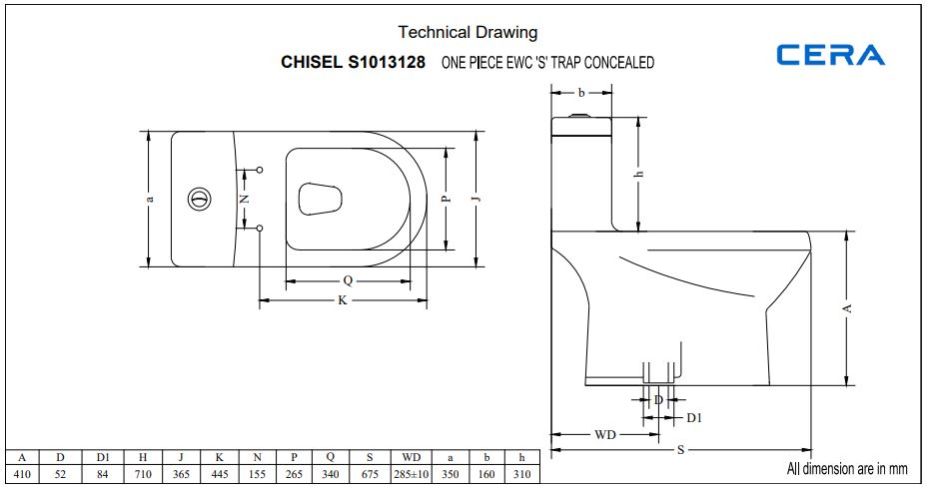 Siphonic Jet Flushing One Piece WC | S1013128 / S1013129 | Size: 675 x 365 x 710 mm