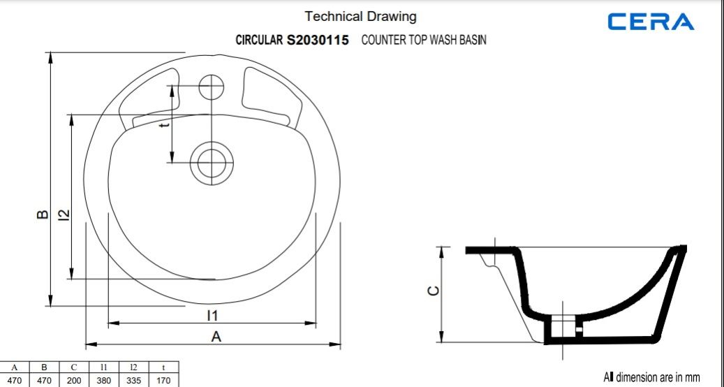 Under Counter with Self Rim Wash Basin | S2030115 | Size: 470 x 470 x 200 mm