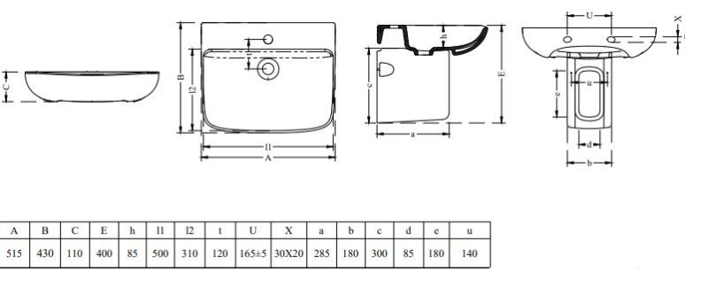 Wall Hung Wash Basin with Half Pedestal | (Basin)S2040170 | (Half Pedestal) S2090134 | Size: 515 x 430 x 110 mm