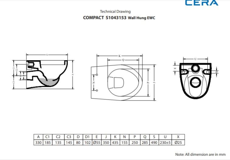 Wall Hung WC | S1043153 | Size: 490 x 350 x 330 mm