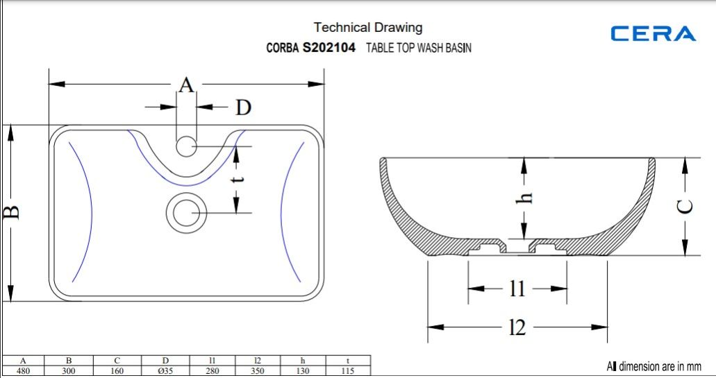 Product Type: Thin rim table top Wash basin