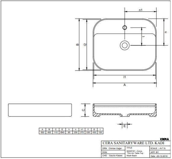 Thin Rim Table Top Wash Basin | S2020161 | Size: 550 x 450 x 110 mm