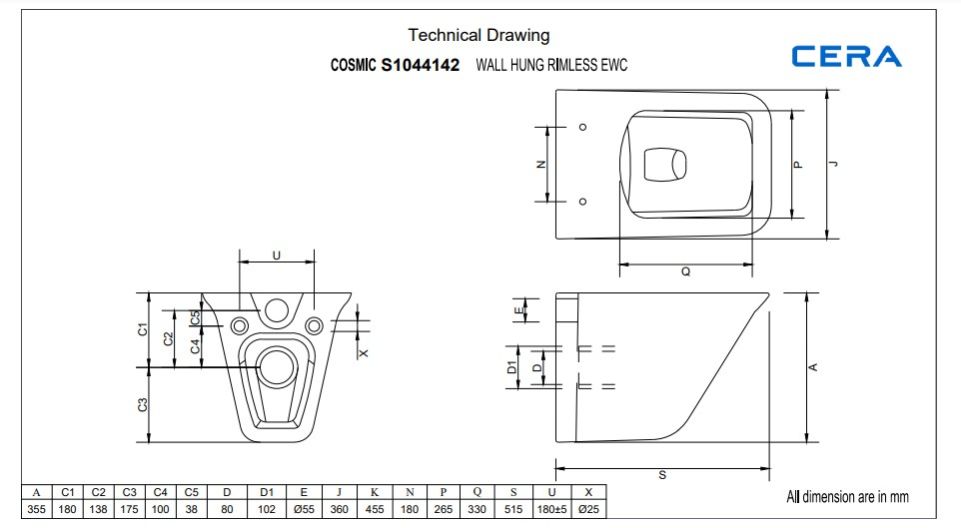 Rimless Wall Hung WC | S1044142 | Size: 515 x 360 x 355 mm