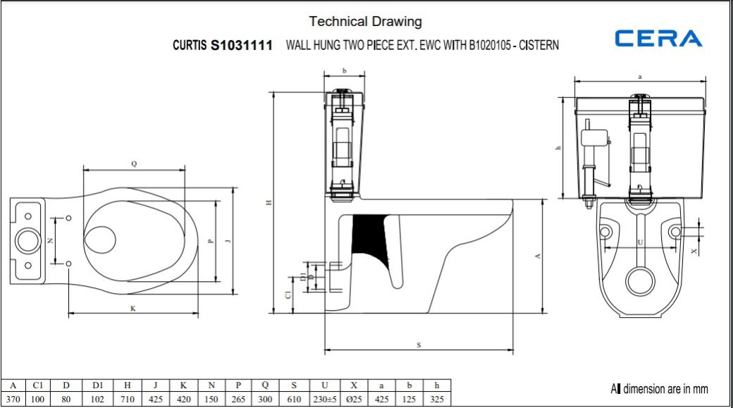 Two Piece Wall Mounted Extended WC | S1031111 | Size: 610 x 425 x 710 mm