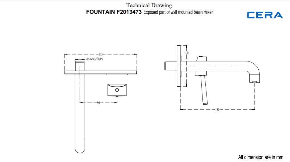 CERA FOUNTAIN BASIN MIXER EXPOSED PART