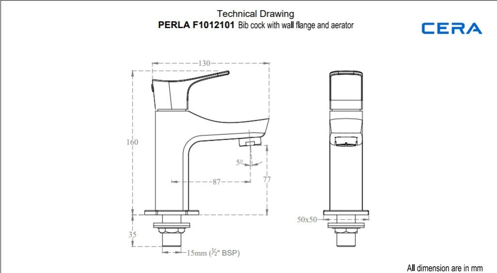 Faucet Type: Perla Quarter Turn Pillar cock with aerator