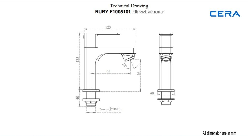 Faucet Type: Ruby Quarter Turn Pillar cock with aerator