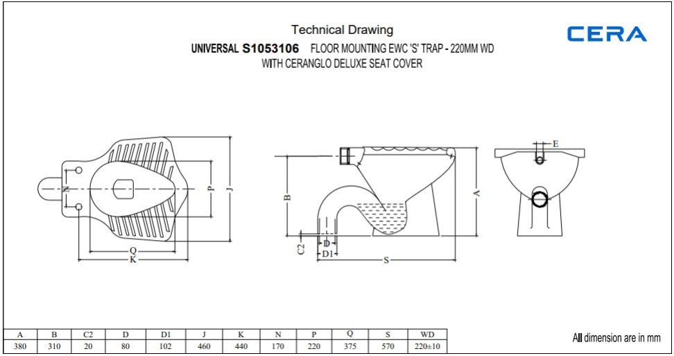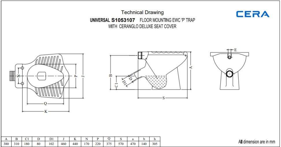 Floor Mounting WC| S1053106 /S1053107 | Size: 570 x 460 x 380 mm