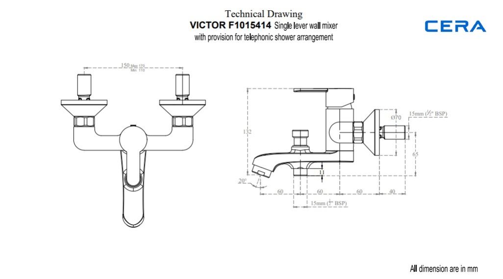 Victor | F1015414 | Single lever with provision for telephonic hand shower