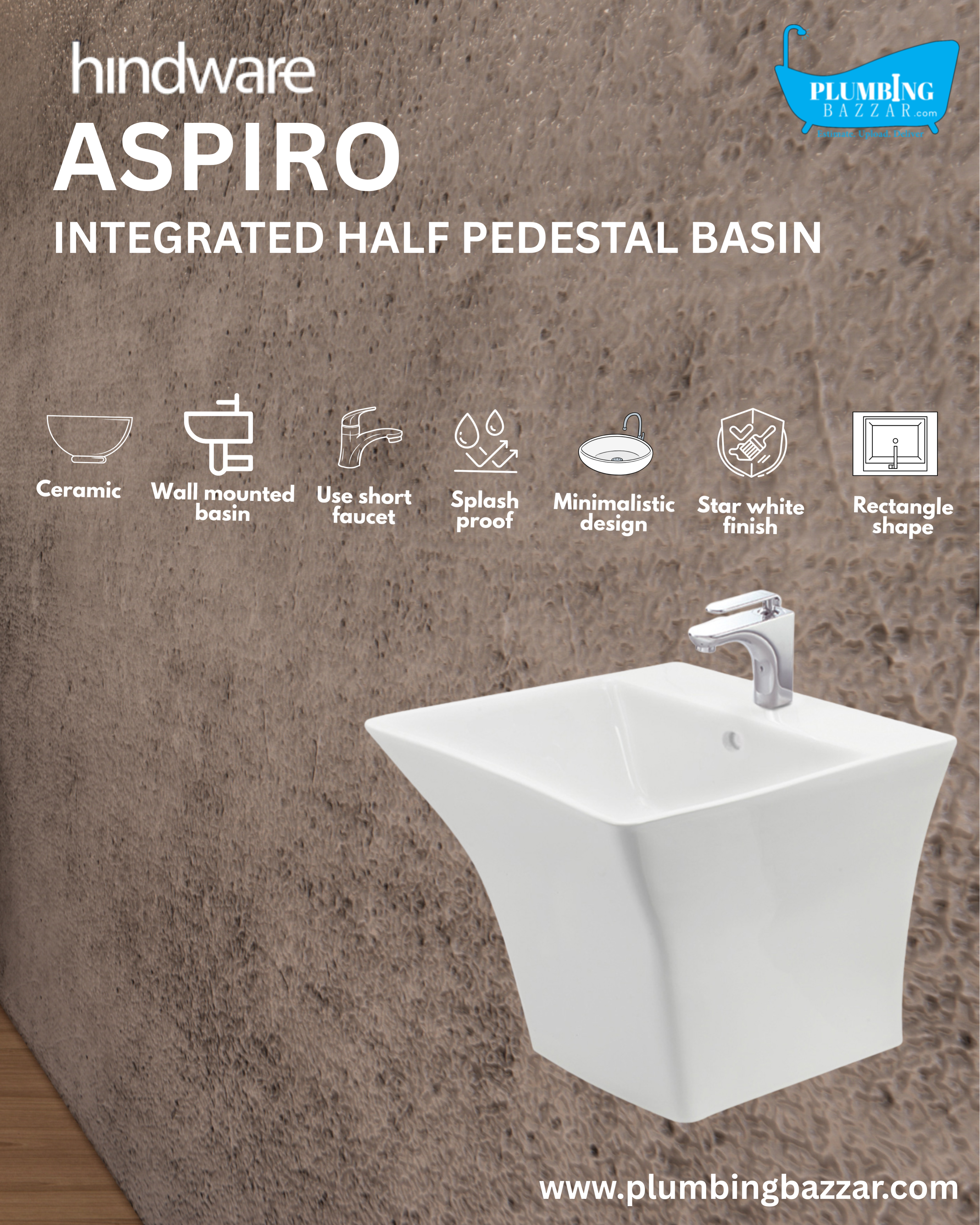 Hindware Aspiro Integrated Pedestal Wash Basin Without Faucet
