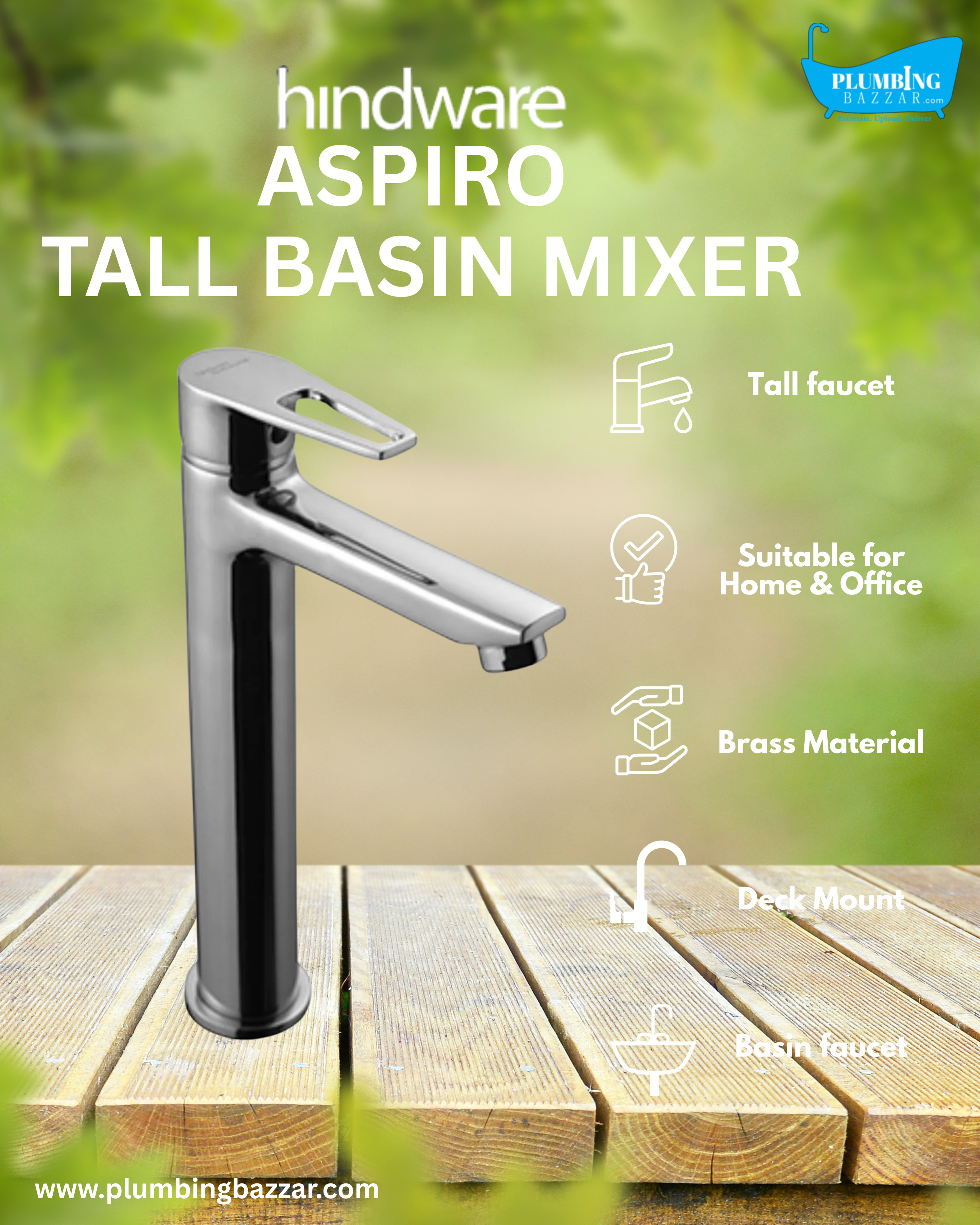 Product : Aspiro Single Lever Basin Mixer Tall Without Popup Waste