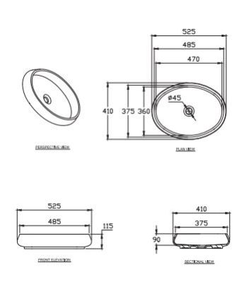 Table Top Wash Basin | 91232 | Size: 52.5 x 41 x 11.5 cm
