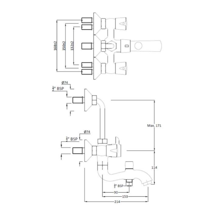 Hindware Cat no. : F730022 Contessa Neo Wall Mixer 3 in 1 with Provision for Both Overhead Shower & Hand Shower with 115 mm Long Bend Pipe