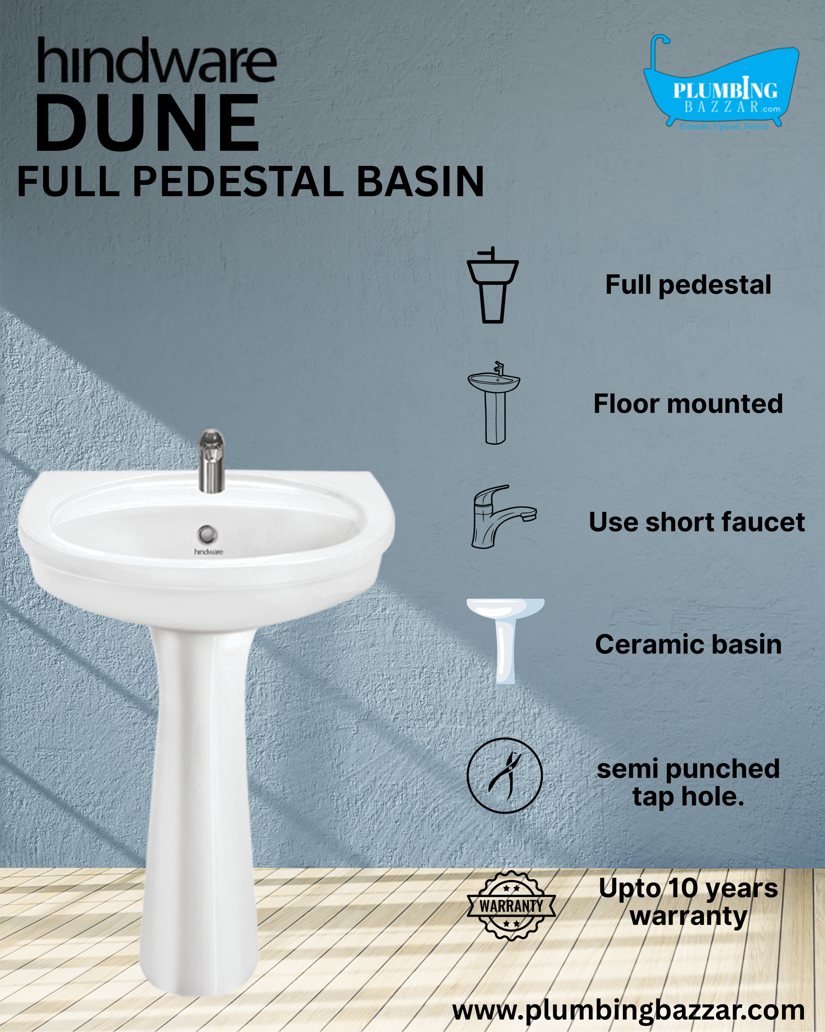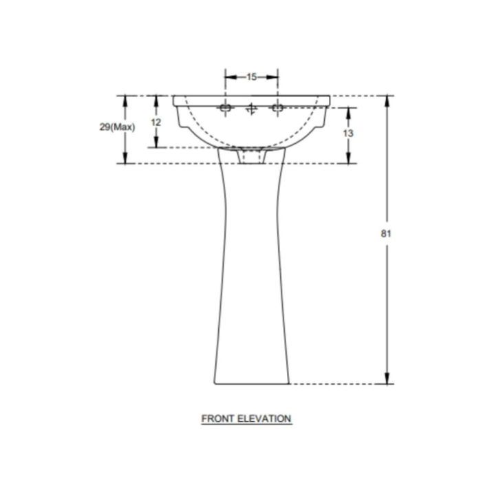Full Pedestal Wash Basin | 10088(Basin)/ 11003(Pedestal) | Size: 46 x 33 x 81 cm