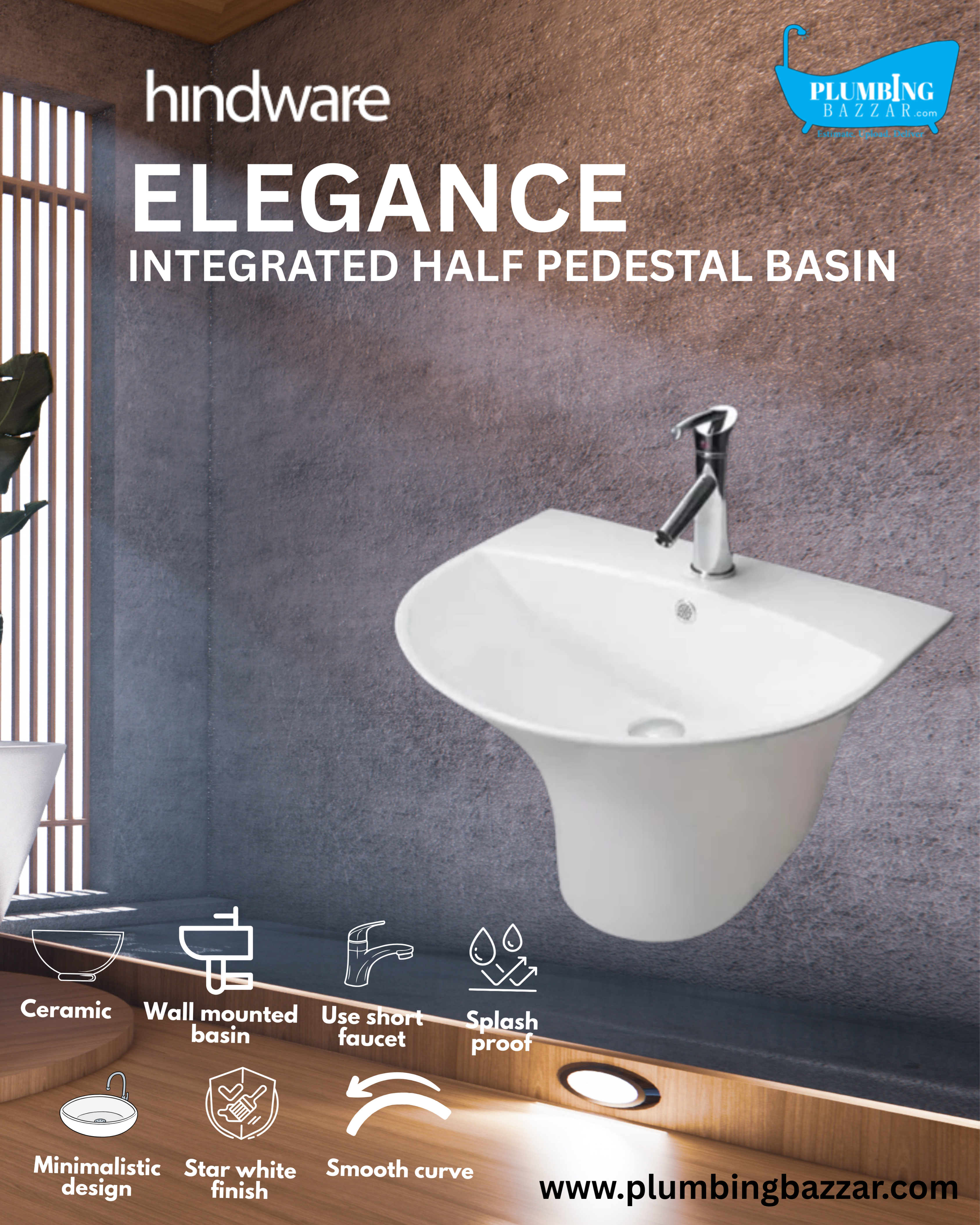 Hindware Elegance Integrated Pedestal Wash Basin Without Faucet