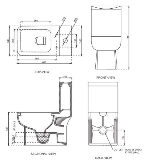 One piece closets Commode | 20169 (P-180) | Size: 64.5 x 35 x 74.5 cm
