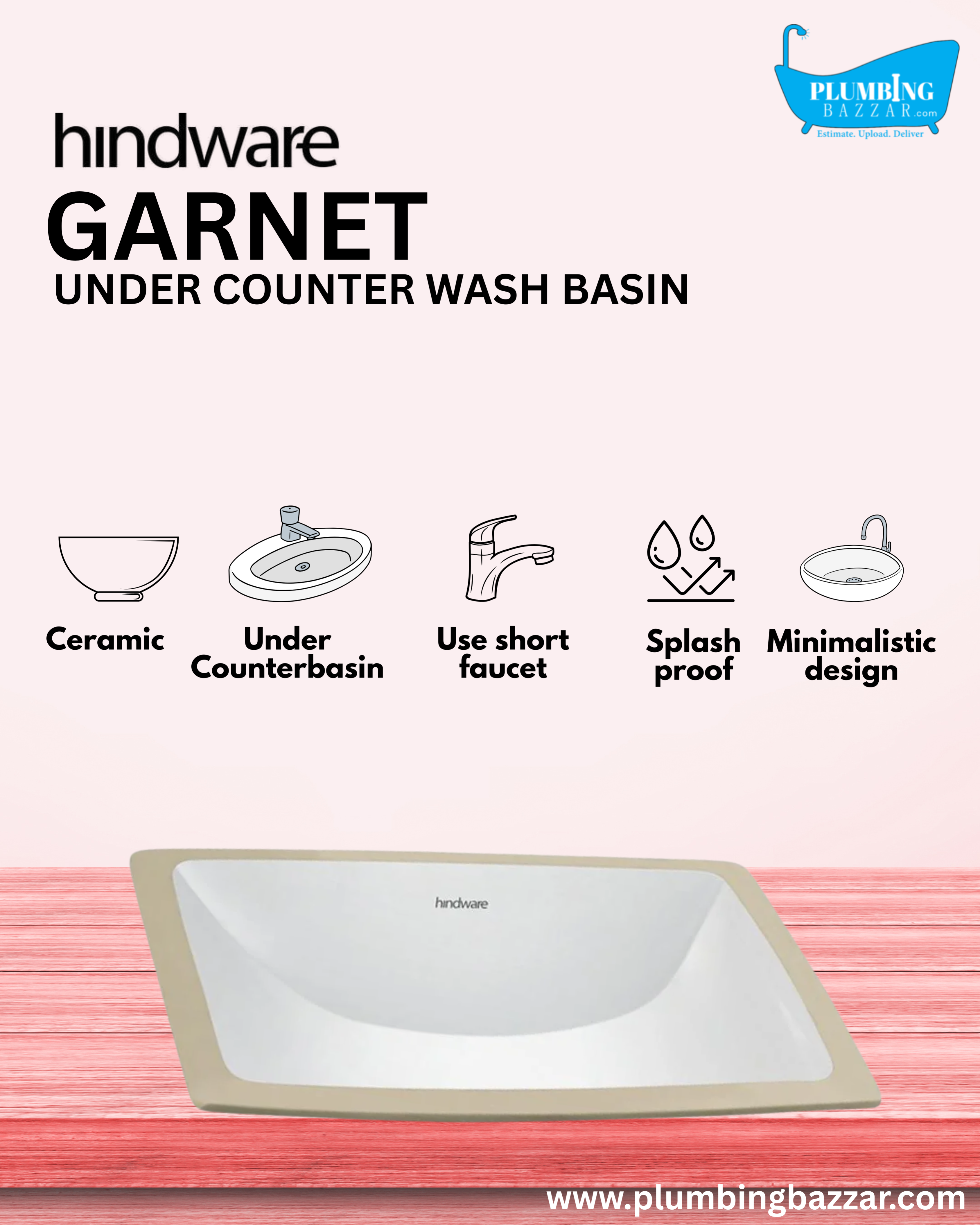 Hindware Garnet Under Counter Rectangle Shaped White Basin