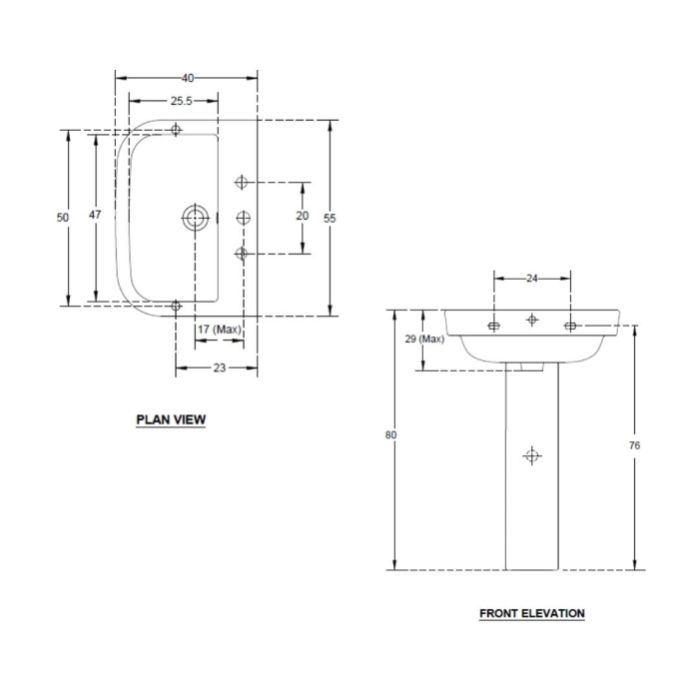 Full Pedestral Wash Basin | 10098 | Size: 55 x 40 x 80 cm