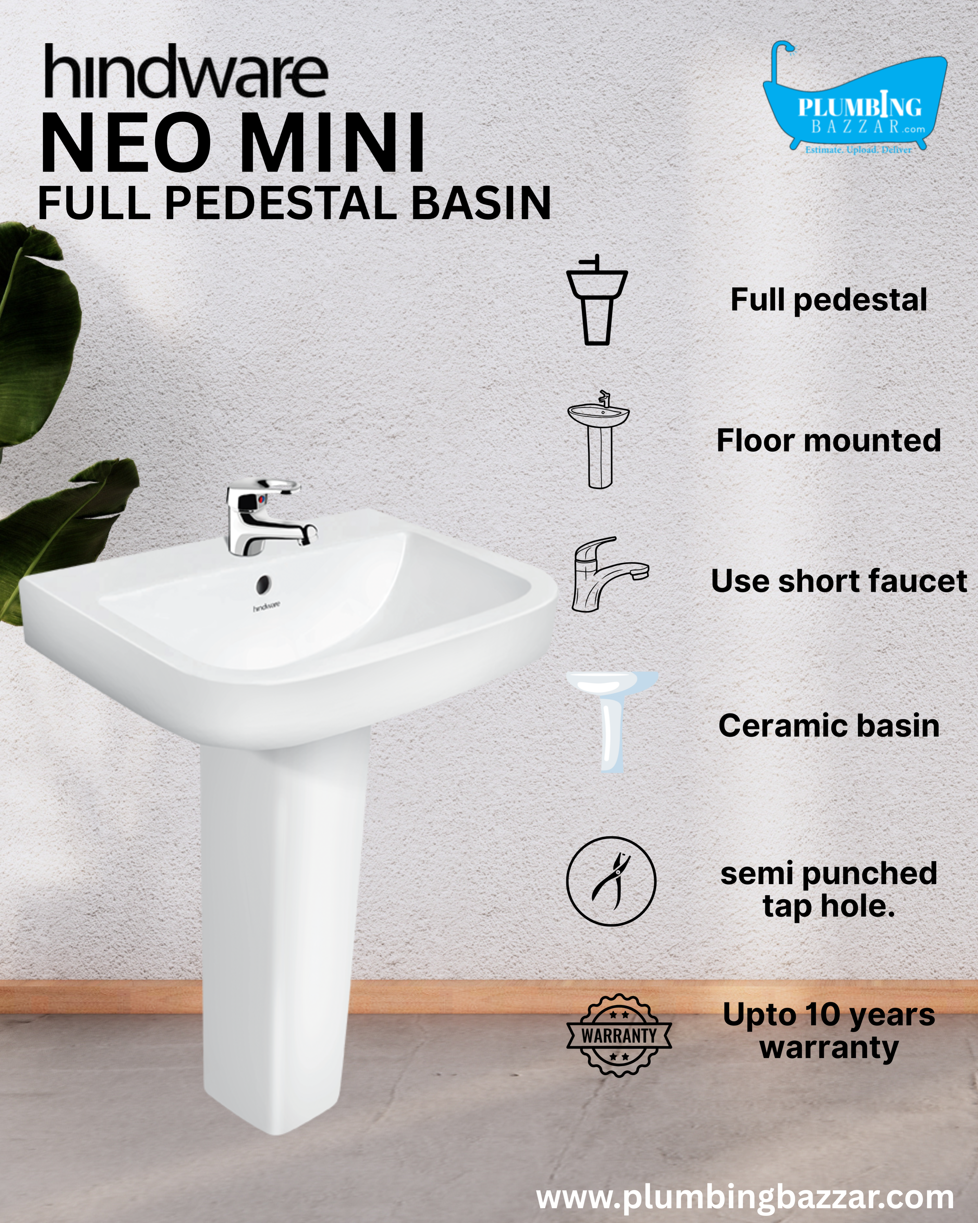 Full Pedestal Wash Basin | 10099 (Basin)/ 110032(Pedestal) | Size: 50 x 40 x 80 cm