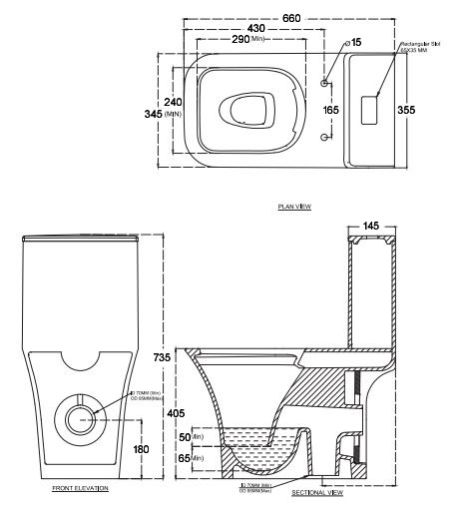 One piece Rimless closets Commode | 92611 (P-180) | Size: 66 x 35.5 x 73.5 cm