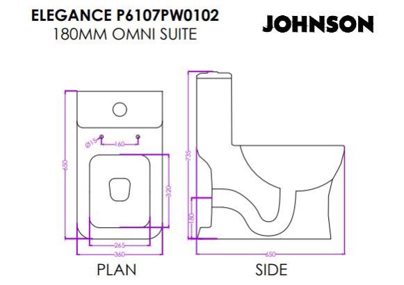 Omni suite Single Piece Commode | P6107PW0103 (S - 220mm) | P6108PW0202 (P - 180mm) | Dimensions : 370x670x730mm