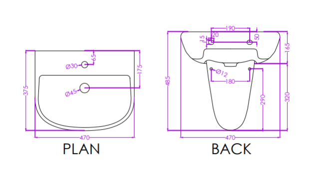 Half Pedestal Basin | P3815PW0203 (Basin), P8217PW0002 (Half Ped) | Dimensions : 460x370x155mm