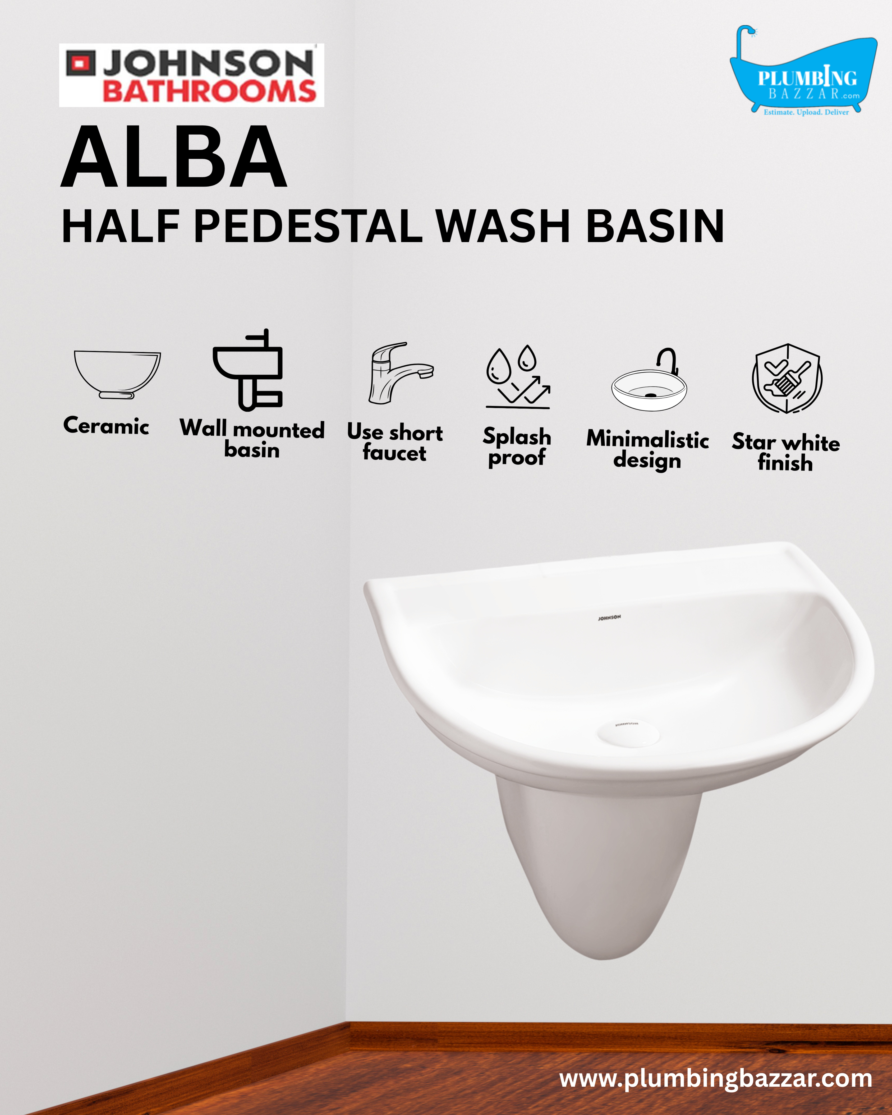 JOHNSON BATHROOMS ALBA HALF PEDESTAL BASIN