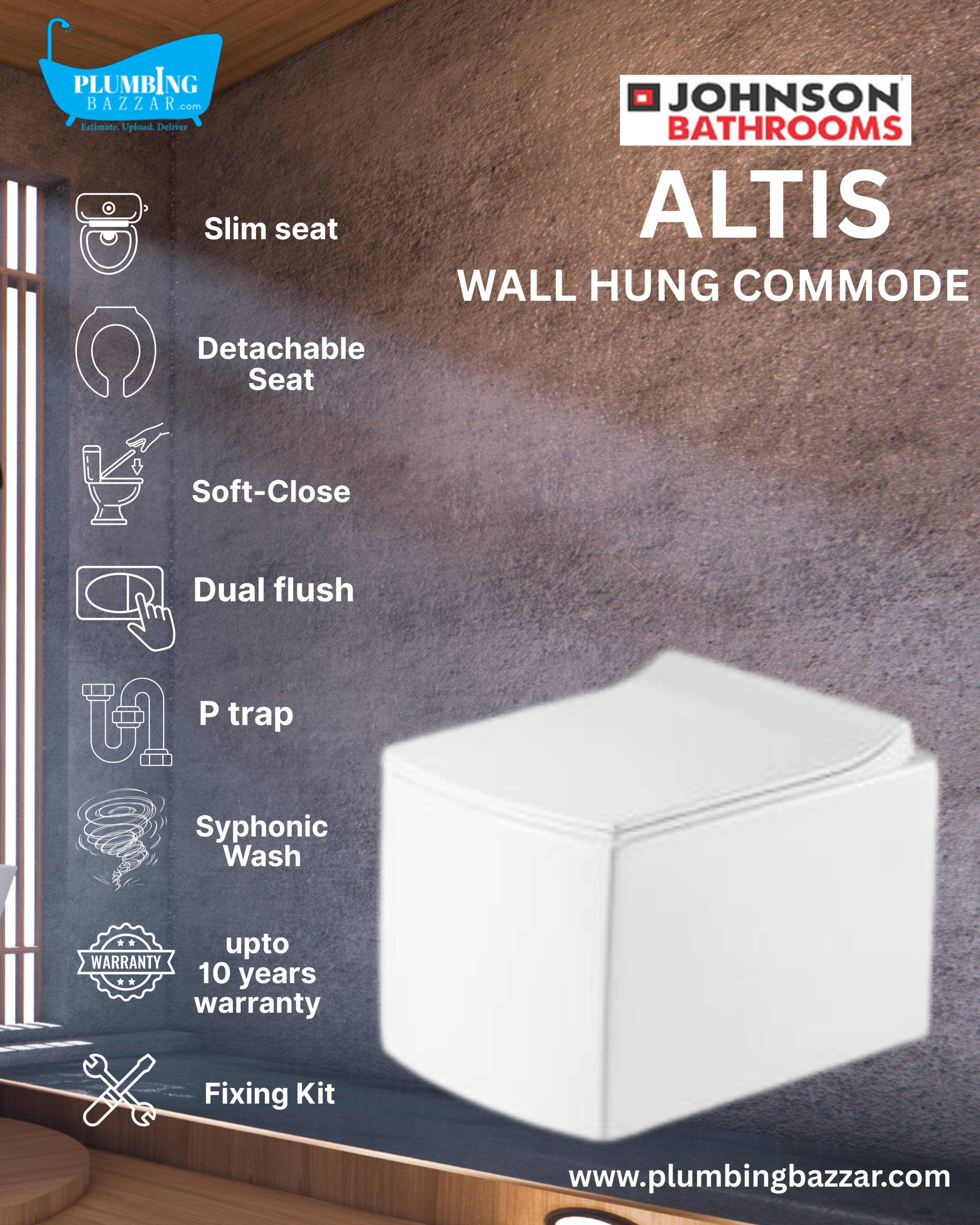 JOHNSON BATHROOMS ALTIS WALL HUNG COMMODE