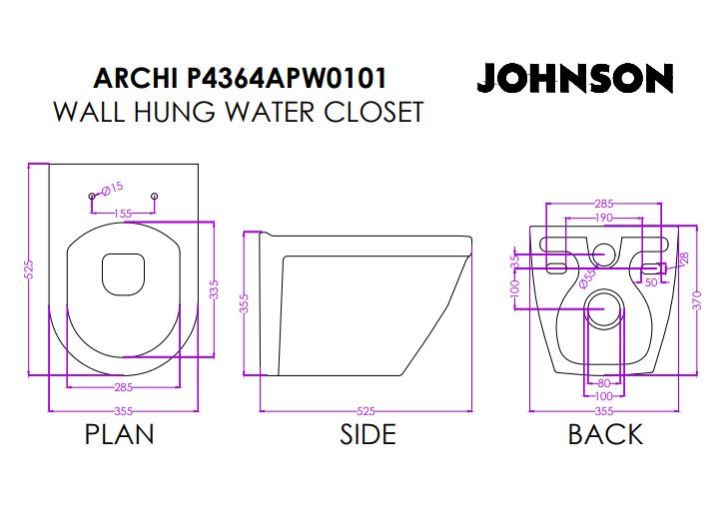 JOHNSON BATHROOMS ARCHI WALL HUNG COMMODE