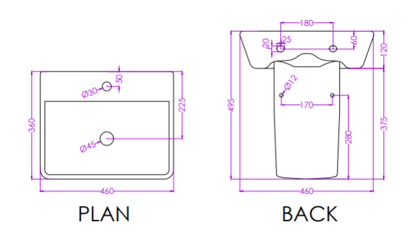 Half Pedestal Basin | G3715PW0403(Basin), G3717PW0002(Pedestal) | Dimensions : 590x4675x175mm