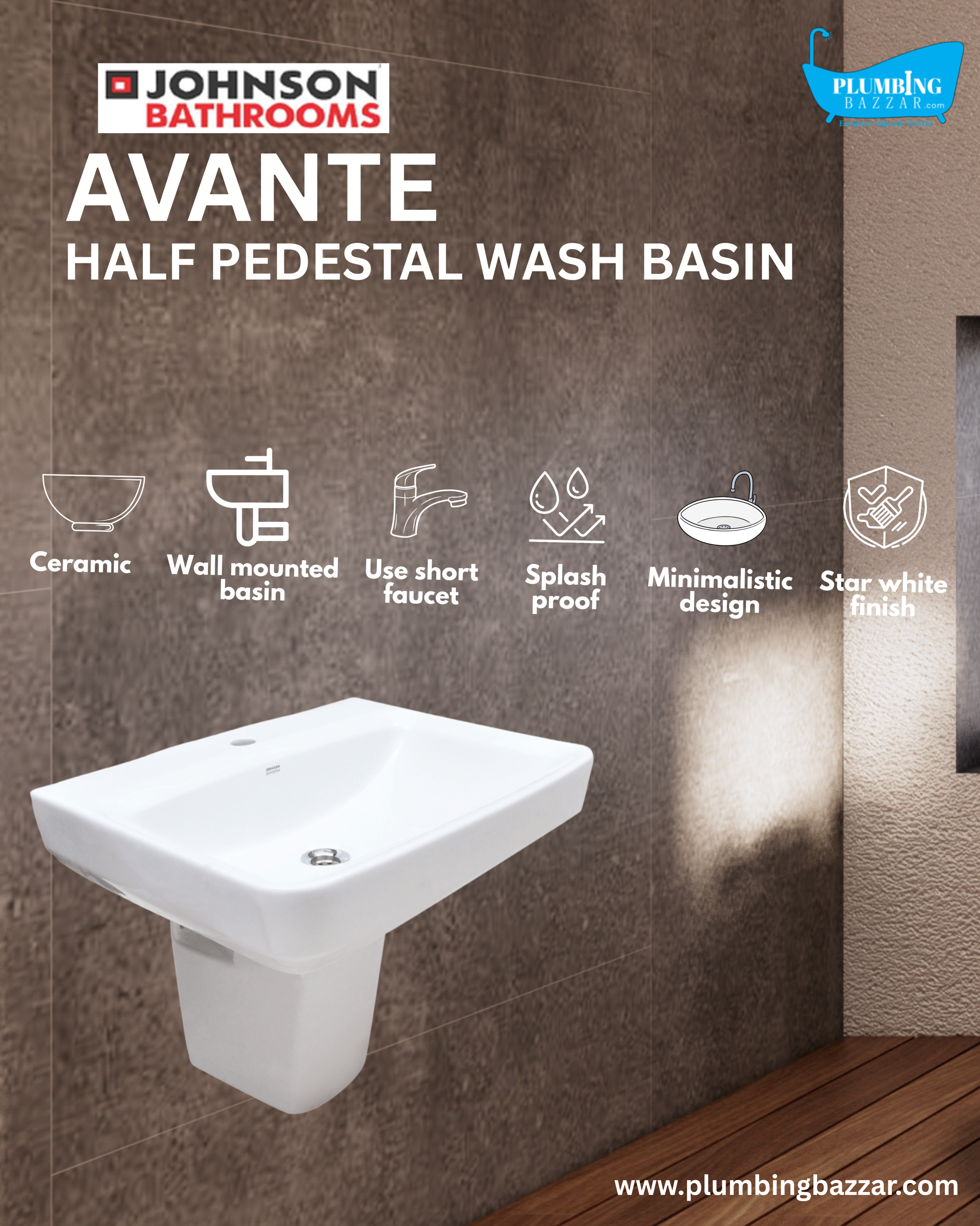 JOHNSON BATHROOMS AVANTE HALF PEDESTAL BASIN