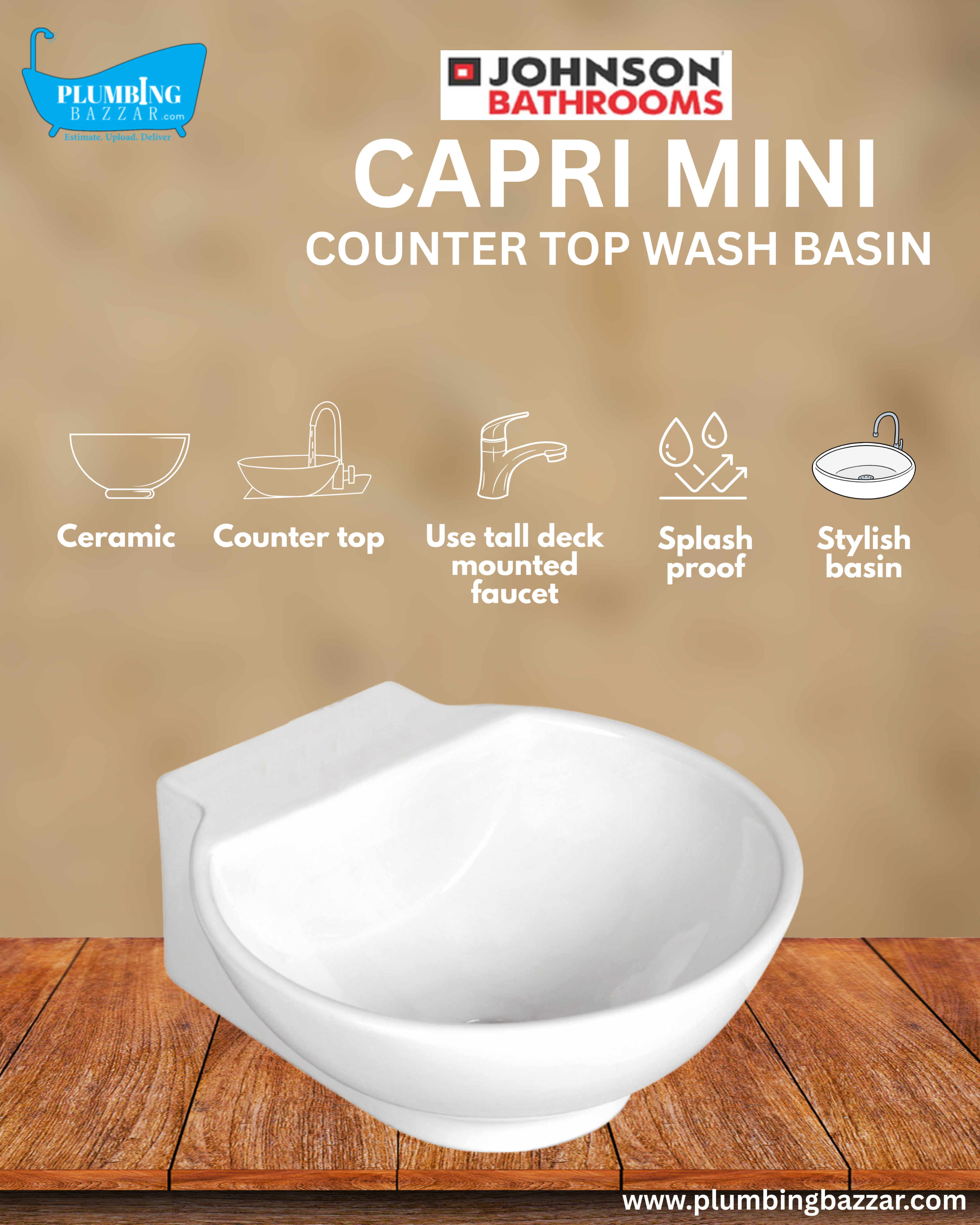 JOHNSON BATHROOMS CAPRI MINI COUNTER TOP BASIN