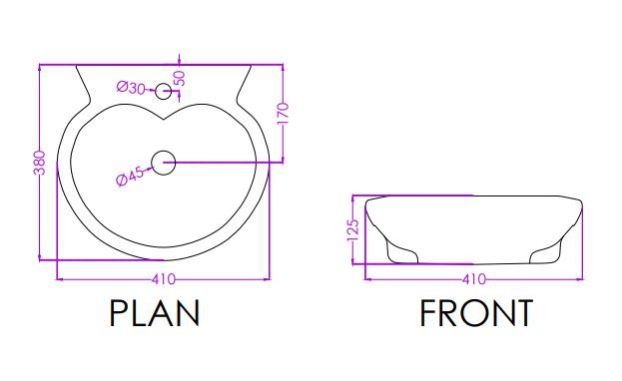 Wall Hung Wash Basin | P4415PW0101 | Dimensions : 410x380x120mm