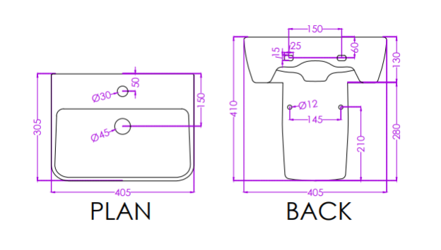 Half Pedestal Basin | P7675PW0103 (Basin), P6317NPW0002 (Half Ped) | Dimensions : 405x295x125mm