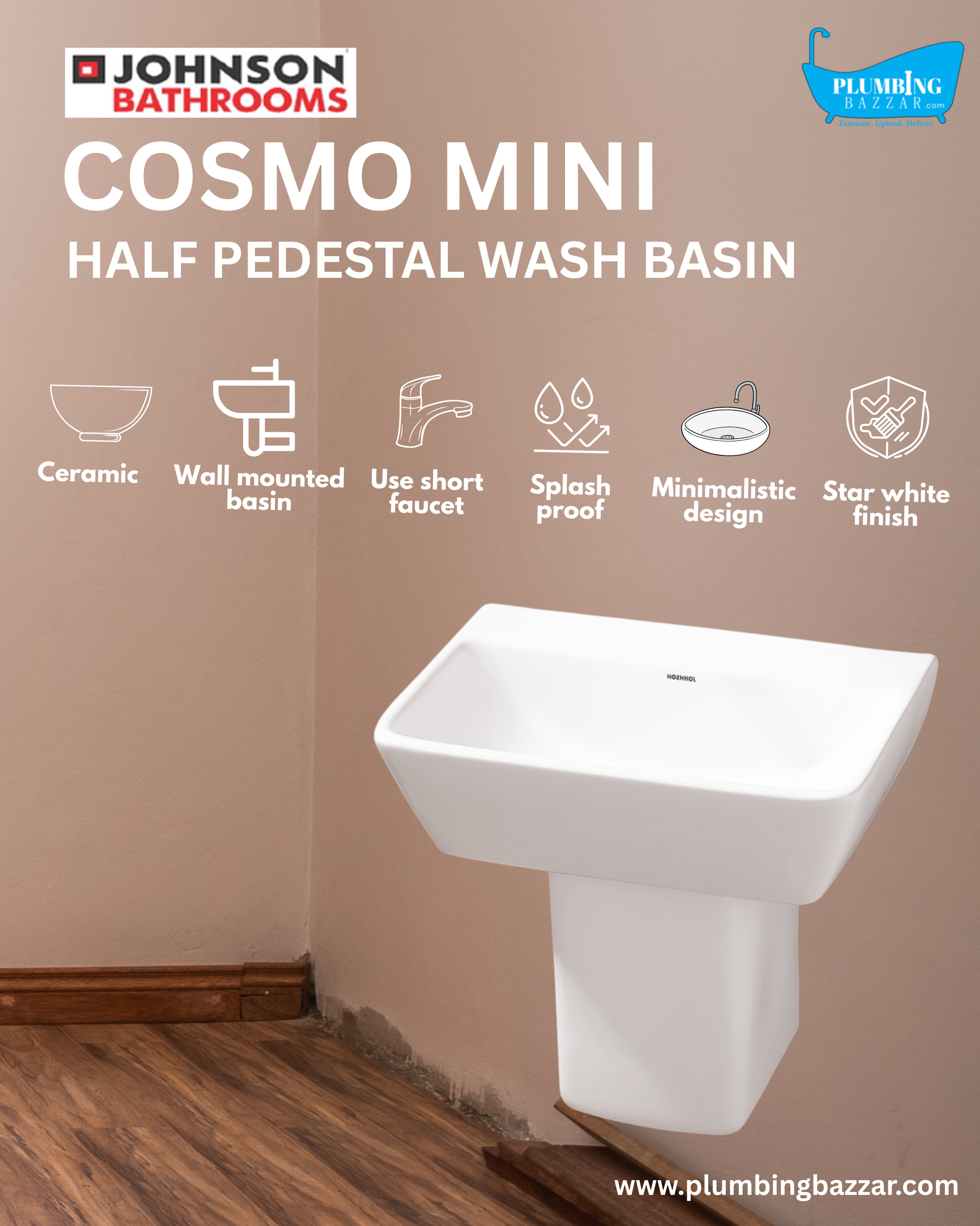 JOHNSON BATHROOMS COSMO MINI HALF PEDESTAL BASIN