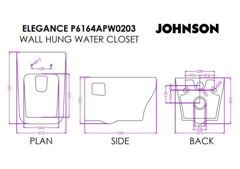 JOHNSON BATHROOMS ELEGANCE WALL HUNG COMMODE