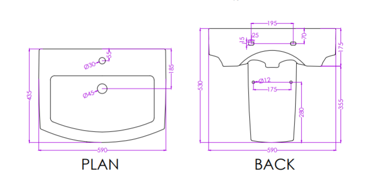 Half Pedestal Basin | G4515PW0400 (Basin), G4517PW0002 (Half Ped) | Dimensions : 575x420x170mm