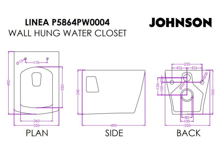 JOHNSON BATHROOMS LINEA WALL HUNG COMMODE